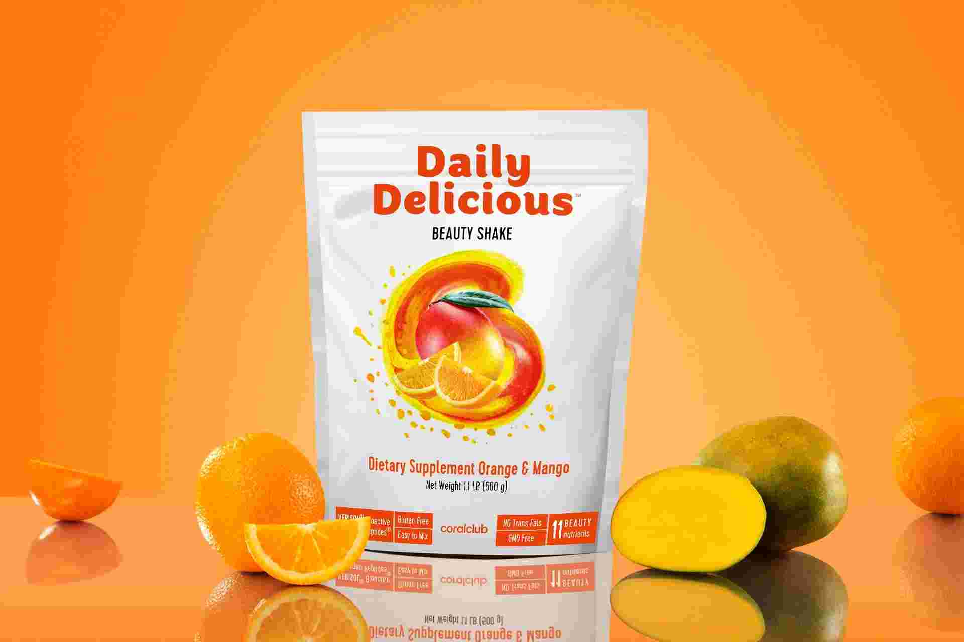 Daily Delicious Beauty Shake, 500 g / 20 portions, Orange & Mango, 500 g / 20 portions