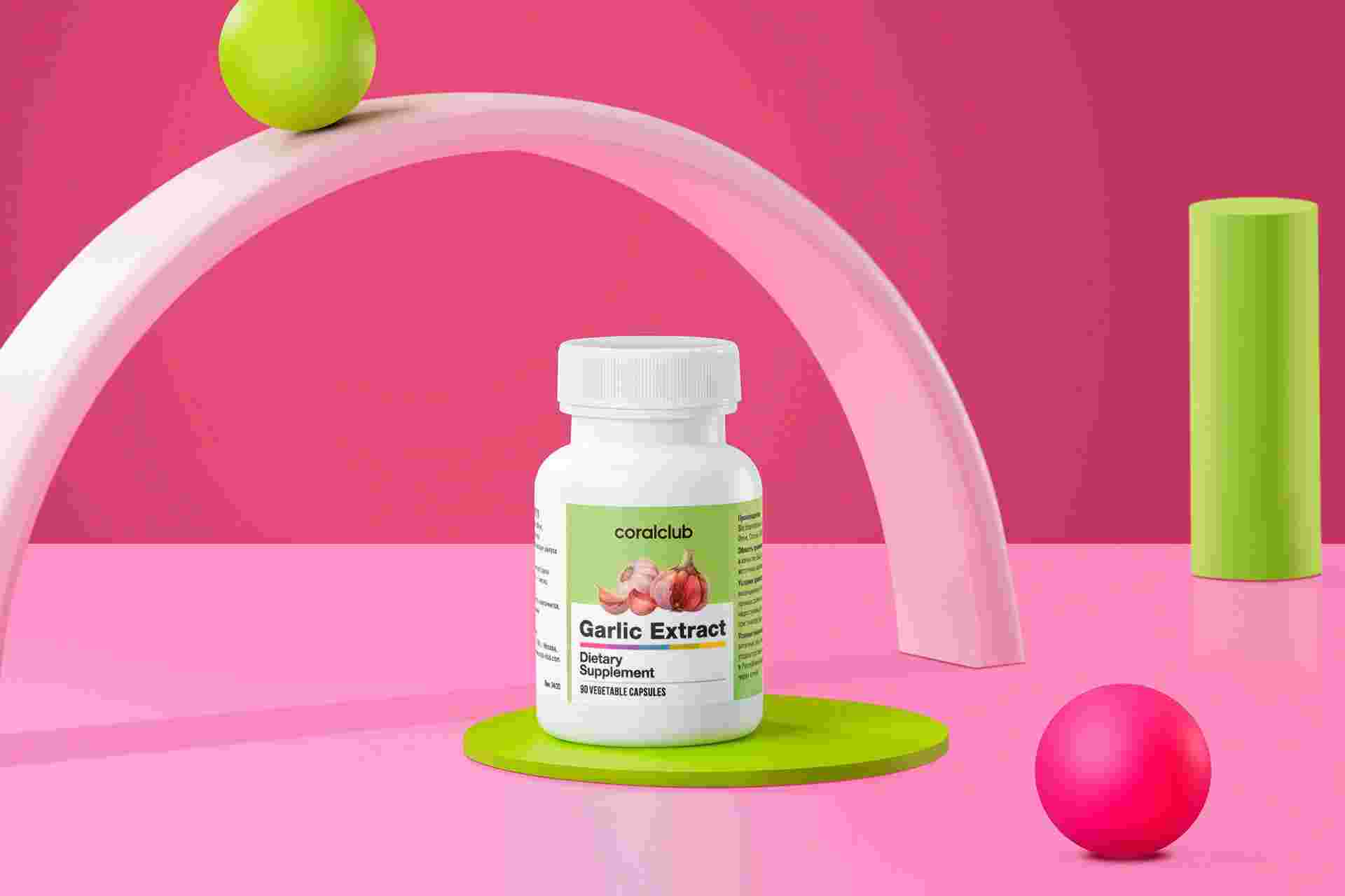 Garlic bulb extract (Allium sativum L.), capsule material: hydroxypropyl methylcellulose, medium-chain triglycerides from coconut oil.